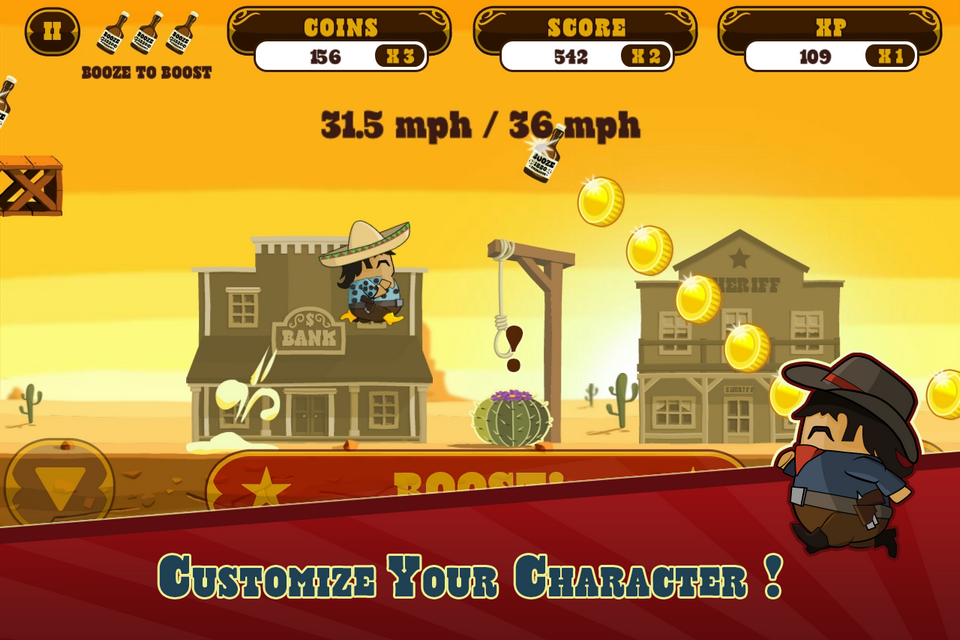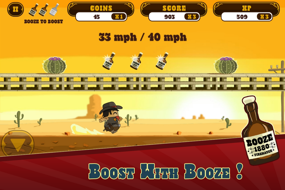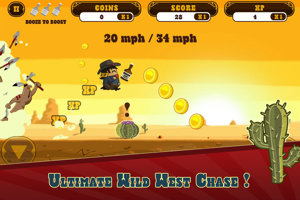 You accidentally emptied a stockpile of hooch belonging to a neighboring Indian tribe, and now they are hot on your trail! Get ready to run, and FAST, amigo! Firewater is not your run-of-the-mill endless runner game, this is not a joyride. It’s a breakneck speed boosting bonanza like no other! Quick! It’s time to vamoose, buckaroos!History
