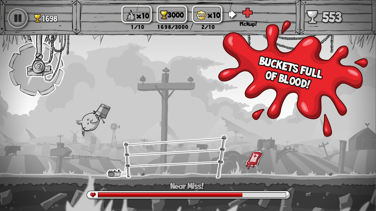 - Endlessly replayable action starring a headless chicken spurting cartoon blood!